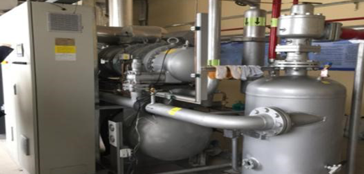 One Hanbell compound two-stage variable frequency compressor LT-S-V and one Hanbell conventional two-stage refrigeration compressor LT-S connected in parallel