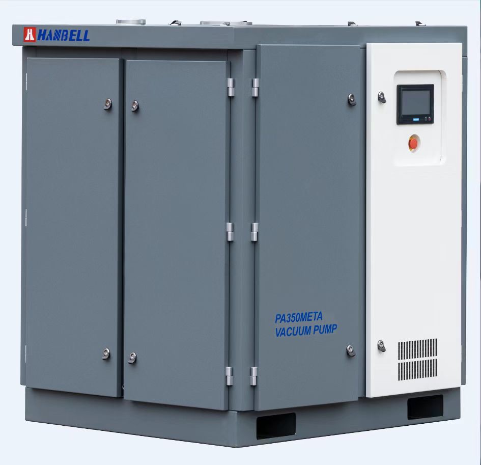 Any central vacuum system engine is a vacuum pump. In order to meet the changing vacuum requirements in the production process, the vacuum pump is frequently started and stopped. This not only increases the probability of failure, but also causes a waste of resources. To solve this problem, Hanbell introduced the permanent magnet variable frequency drive technology. Through the feed- back of the inlet pressure sensor, the computer controller carried out parameter analysis on the pressure fluctuation trend and other operating states, gave speed control instructions to the converter, responded quickly, and accurately maintained the inlet vacuum pressure, so that the pumping speed and energy consumption of the vacuum pump were in line with the actual needs of users. PA META series screw vacuum pump only provide what the system needs.